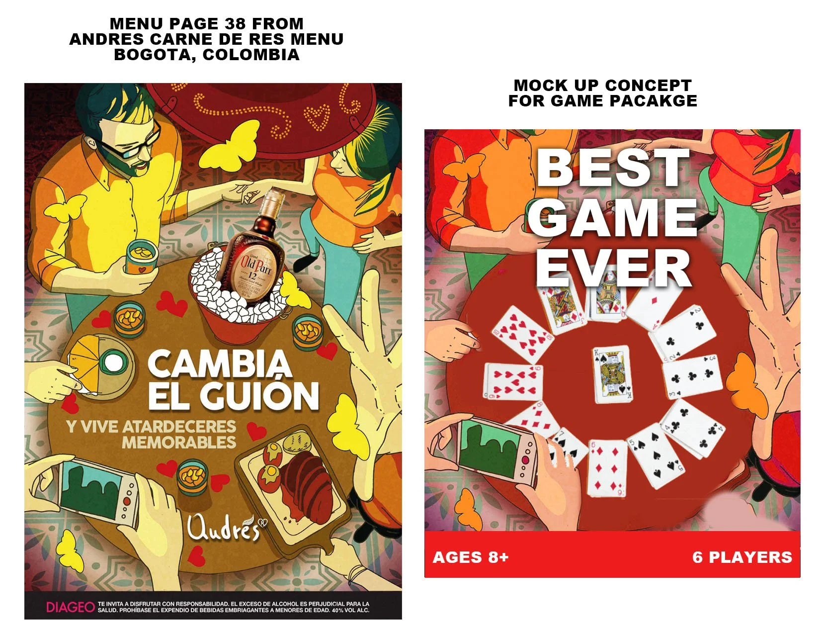 What you can do is take this image and send it over. To an illustrator and explain to them, I've got this item called best game ever. That's what my little mock-up says, and this is how I want the packaging to look, but I need you to create a new illustration of people around the table.
