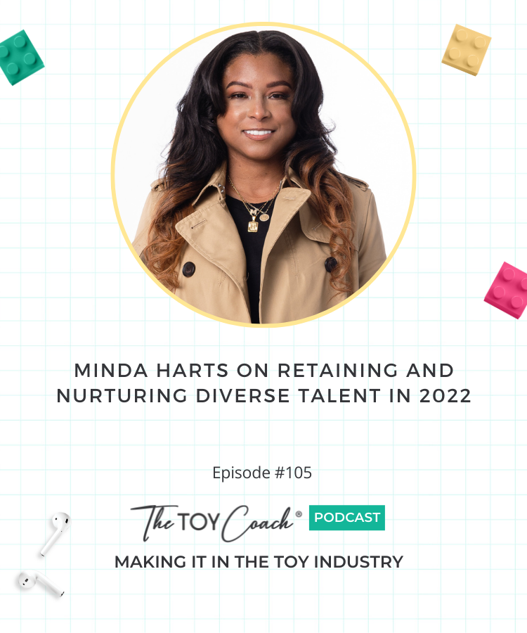[00:00:04] Well, Hey there toy people Azhelle Wade here and welcome back to another episode of the toy coach podcast, making it in the toy industry. This is a weekly podcast brought to you by thetoycoach.com. On December 7th, 2021 I hosted a fireside chat with Minda Harts for my friends over at women in toys. The goal of the conversation was to answer this question, how can we attract and retain diverse talent in our industry and how can women of color advance in their careers with confidence and authenticity? Now I know on this podcast, I focus highly on inventors and entrepreneurs, and sometimes we dive in with some corporate toy industry advice. Well, my friends that is a big part of today's episode.