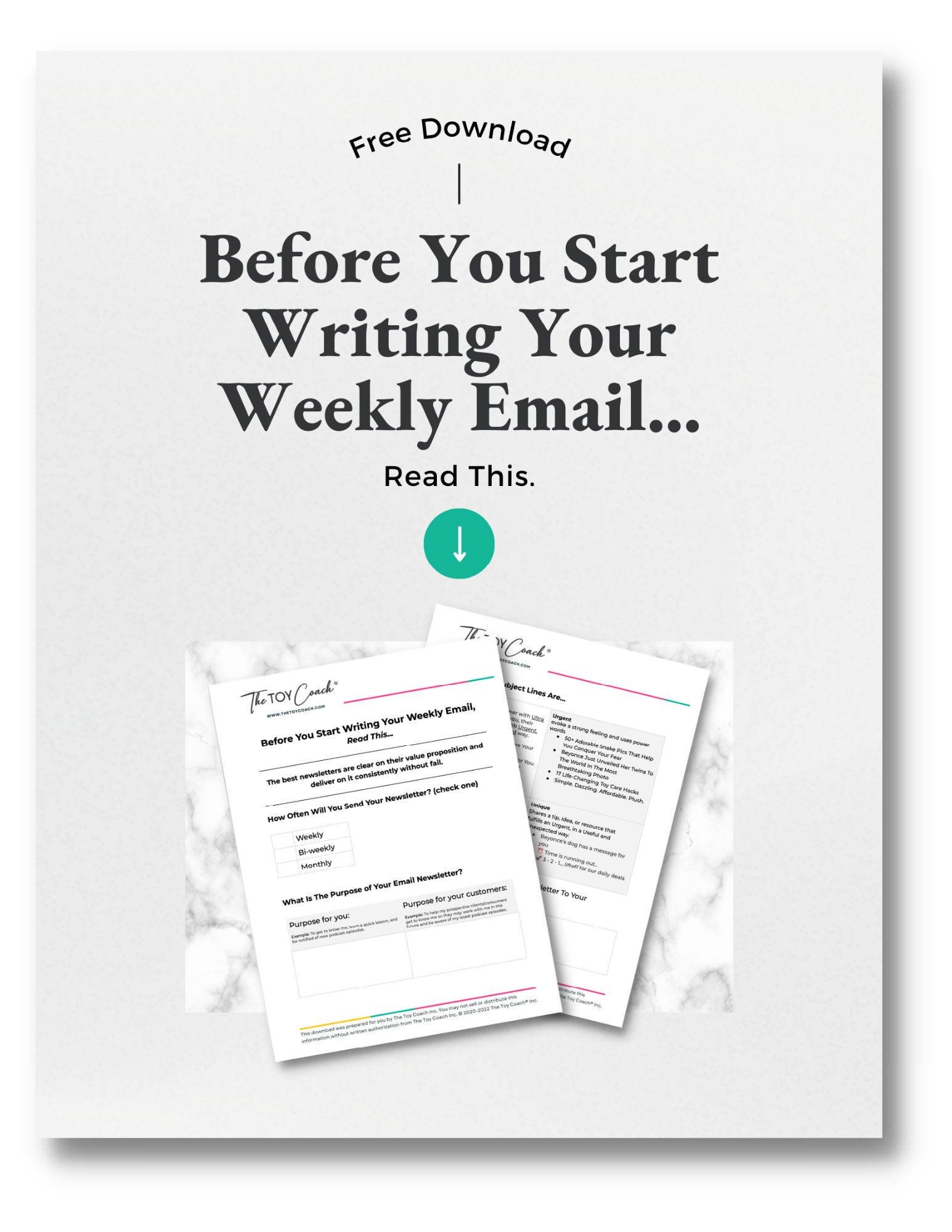 [00:03:41] Okay, let me not waste any more of your time. Let me dive into the topic for today's . Episode. For today's episode, I did a presentation recently for a company called DJECO, DEJCO is a French brand that has CR been creating fun, imaginative, and educational toy since 1954. Their goal is to contribute to children's development. Well, this amazing toy company also host events called Joy Fix for their retail partners and for their sales reps and people that they work with and friend of the show, Darby, reached out to me and invited me to join their joy fix as a speaker. I was super nervous to speak at this event. It was actually the first time I was teaching a topic that I use every day in my business, but I never teach to other people. And that is email marketing. So today I wanna share with you the presentation I gave. We are going to play the zoom recording of that call. Now during this presentation I mention a downloadable guide called Before You Start Writing Your Next Email, read this. This is literally the guide that I refer back to when I am writing my own emails. So I would highly recommend that you download this guide yourself. Head over to learn dot the toy coach.com/email to grab a copy of this guide, or you can head over to the toy coach.com/ 1 69, which is the page for this episode. And that link will also be waiting for you.